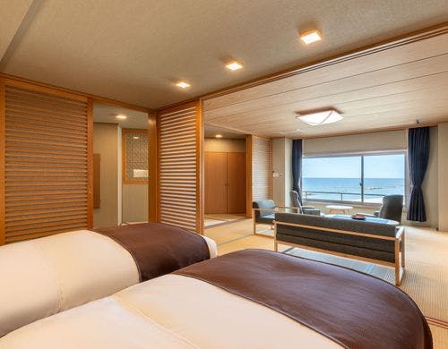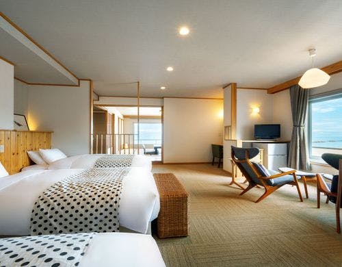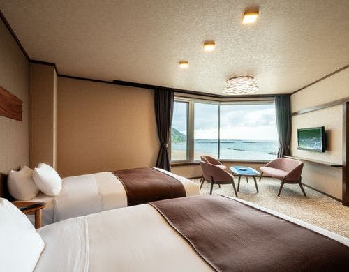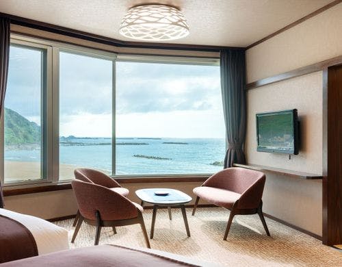 山形で一番海に近い宿!全室オーシャンビュー♪新鮮魚介の食事と共に絶景温泉を愉しむ海旅♪【酒田・鶴岡エリア無料送迎可能】