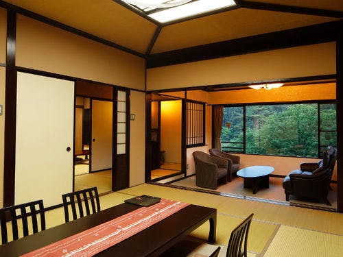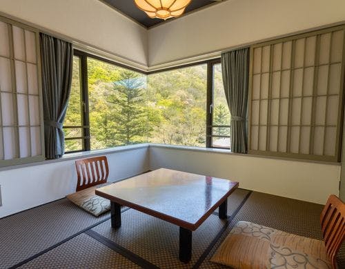 絶景の貸切露天風呂と美肌の湯。伝統の囲炉裏料理「平家お狩場焼」と栃木全酒蔵の地酒が楽しめるお籠り宿です