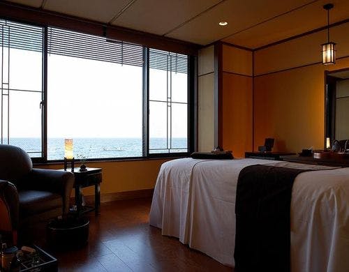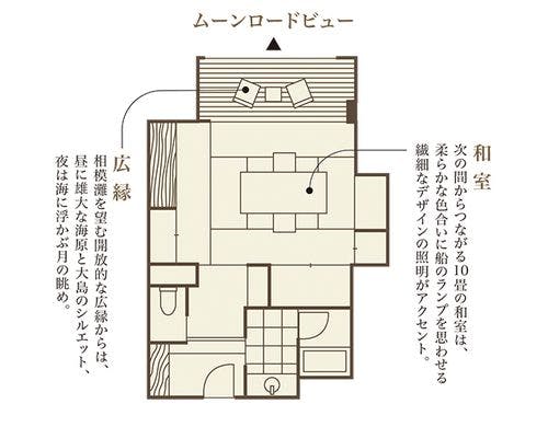 相模灘を一望できるおちついたお部屋。木の香ゆかしい檜のお風呂。ゆったりとした時の流れと海鮮料理に舌づつみする豊かな時を味わっていただけます。