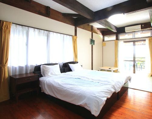本部町の美ら海水族館に車で7分。本館の宿は4つのお部屋(全室オーシャンビュー)と、別館には1棟貸別荘が有る宿泊施設です。