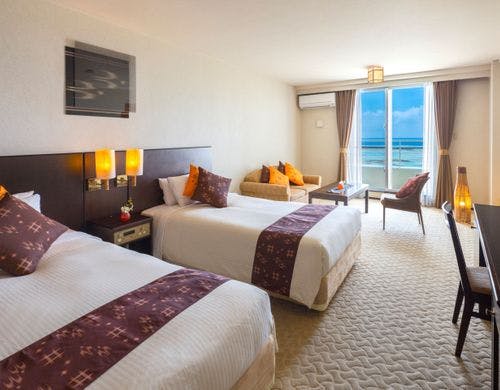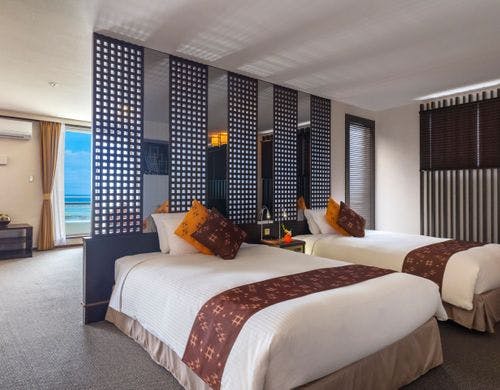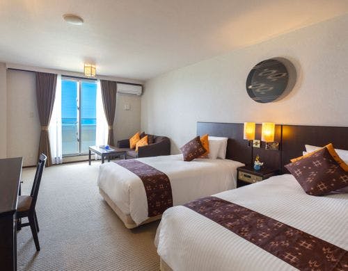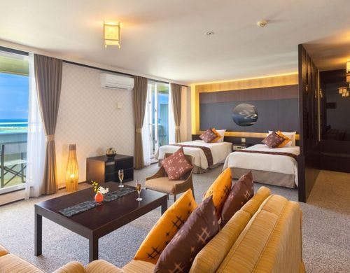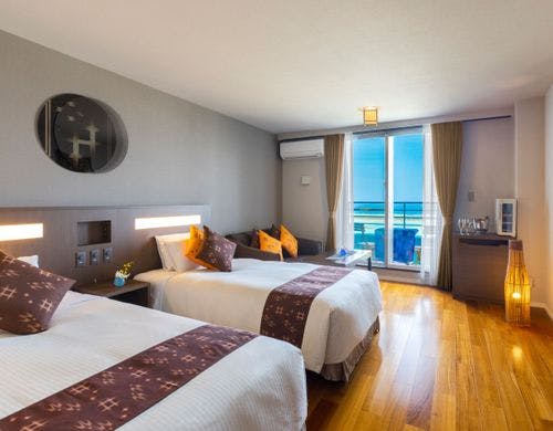 久米島の夕陽スポット◎エリア人気1位!大浴場完備! 最も夕陽が奇麗なシンリ浜沿いの全室オーシャンビューのリゾート