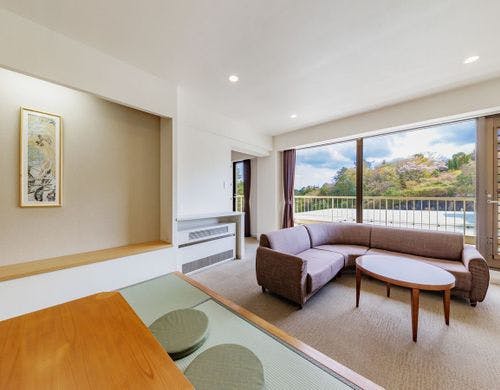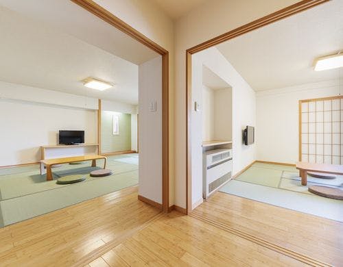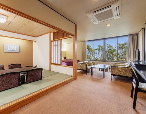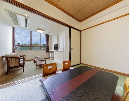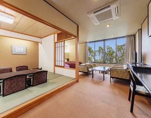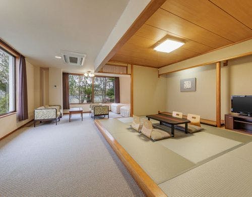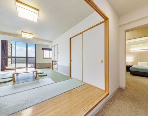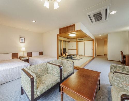 和室を中心に和洋室、シングルルームなど全260室を備えています。「かぞくスイート」は、三世代が一緒にゆったり過ごせる広々とした空間が特徴の人気の客室です。スタンダードルームは温泉風呂付きの部屋も選択でき、心地よい滞在をお約束します。