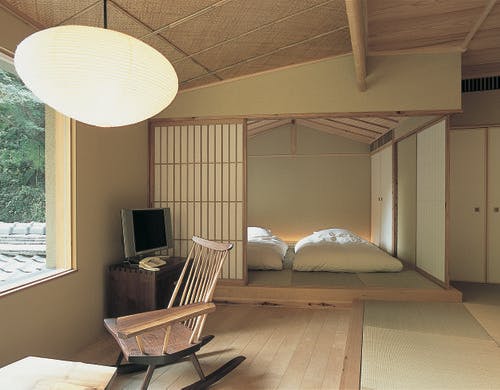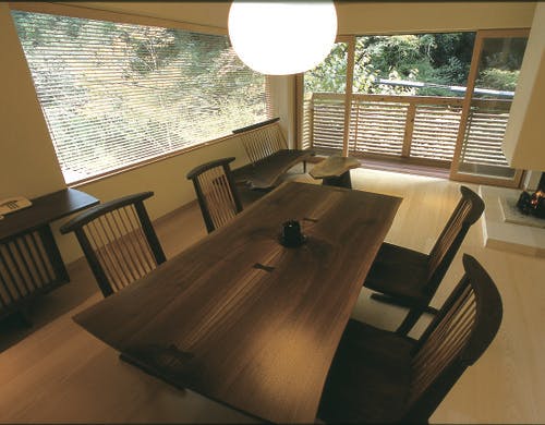 客室はメゾネットタイプで露天風呂付、和室は囲炉裏・洋室は暖炉・共に書斎を完備。夏は川床料理、冬は氣生根鍋が名物です。