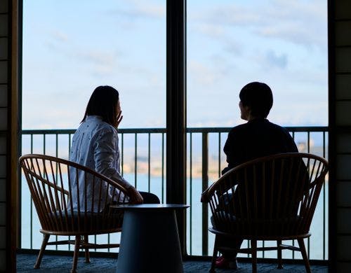 【お料理高評価】柴山潟から白山の絶景を望む湖畔の宿 でのんびりゆったり美食旅 。フリーラウンジも好評です。