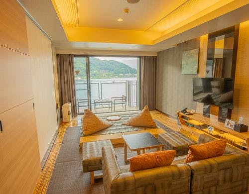 設備/サービス最上階のパノラマ風呂は、湖と一体感が味わえるインフィニティ設計です。開放感のある空間で、絶景を堪能しながらゆったりとした時間を過ごせます。レストランでは、四季折々の素材を活かした料理やスイーツが堪能できます。ラウンジ&バーや地元特産品を扱うギフトショップも備えており、充実した滞在を楽しめます。