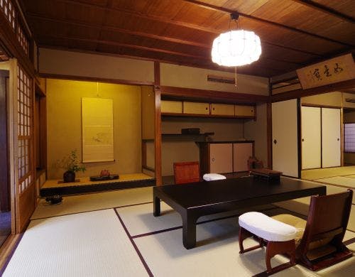 創業は文政元年。本館は木造二階建数寄屋造、新館は鉄筋三階建で和にこだわった設えです。キメ細やかな接遇を誇りとし四季折々の京懐石料理が自慢。