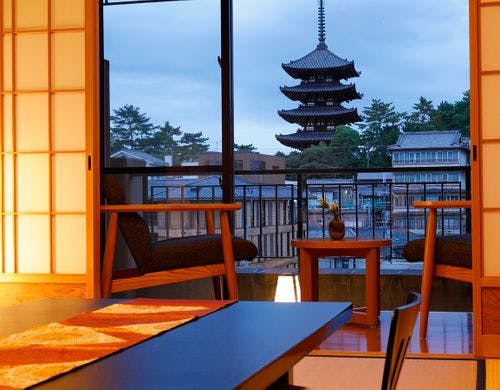 料亭旅館が魅せる本格会席。露天風呂やお部屋から世界遺産「興福寺」を望む。奈良の風情に浸る旅。