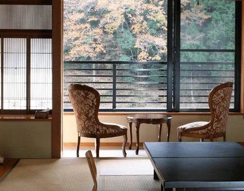 川原に湯の湧くのは当館前だけで豊富な温泉を利用した自然の露天風呂や冬期には仙人風呂も楽しめます。館内には四季折々の山野草を生けています。