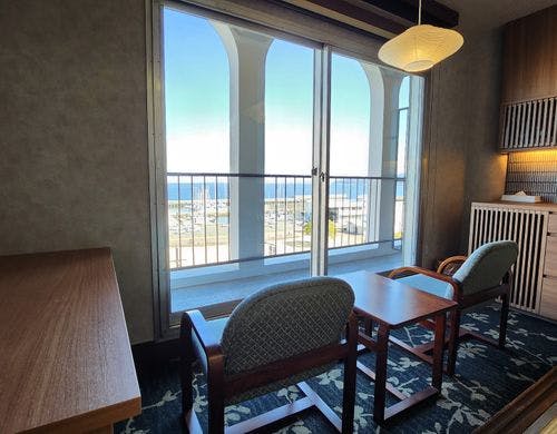 駅から8分、繁華街まで0分。別府湾の景観を望む「まちなか和風温泉ホテル」。2023年2月の改修で快適度が向上しました。