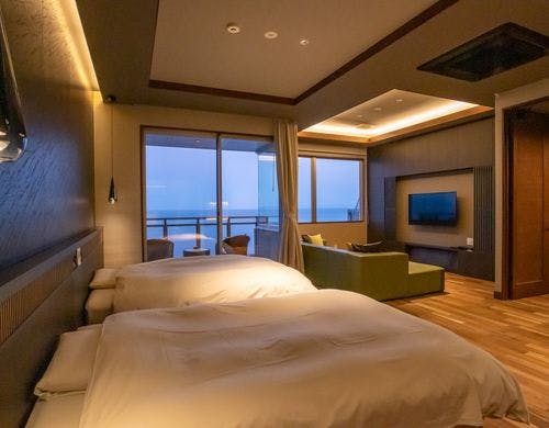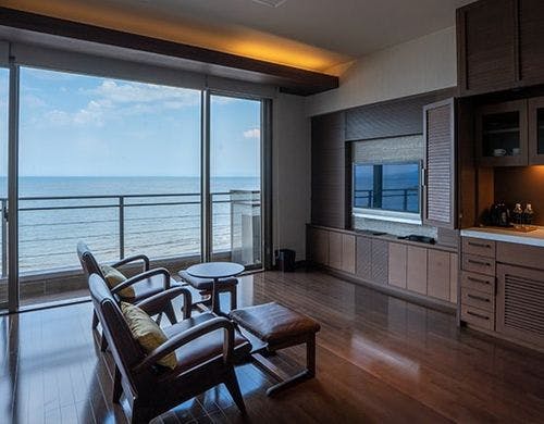全てのお部屋がオーシャンビュー、露天風呂付き。個性際立つ、3つのお食事処。笑顔が彩る”温泉リゾート旅館”です。