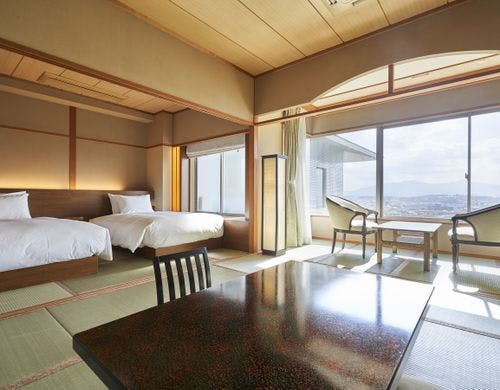 湯量豊富な天然温泉が自慢。充実の設備が嬉しい玉名市街地を見下ろせる高台のホテル!ボウリング場・つかさの湯も隣接。