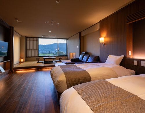 【15室の露付客室で極上stay】全室から雄大な筑後川と耳納連山を眺める『地元美食』に拘った癒しの宿。しっとり美肌の湯。