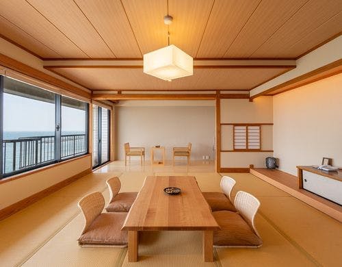 厳選食材と手作りに拘った北茨城フュージョン料理。全客室から水平線・星空・二ツ島の絶景を望む。屋上の露天風呂は開放感抜群。