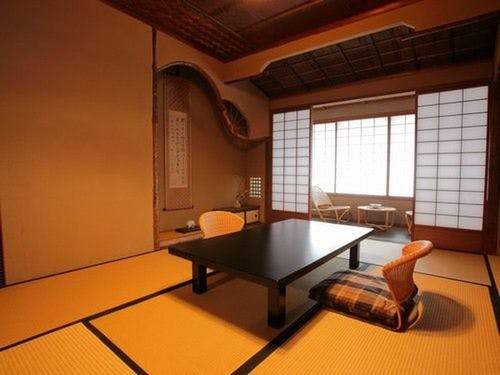 大正の面影に現代建築の美を調和させた木造2階建ての純和風旅館。夕食は玄界灘の魚介類や豊富な旬の野菜などを用いた会席料理。