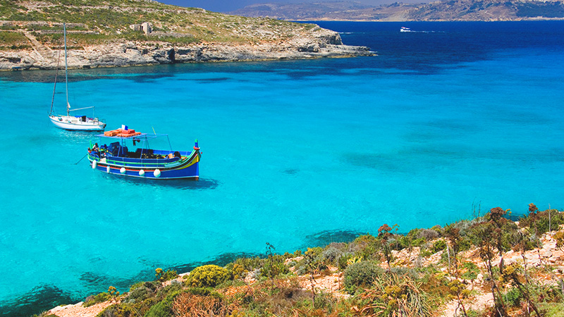 イタリア、シチリア島の南に位置するマルタ共和国には、マルタ島、ゴゾ島、コミノ島の3つの主要な島があります。夏に訪れるなら、ぜひブルーラグーン(コミノ島)へ!マルタ島からフェリーで約20分。到着すると、エメラルドグリーンに輝く美しい海に出会えます。透明度抜群のこの海は、夏の期間(6~9月)ヨーロッパ各地から観光客が訪れ、パラソルやデッキチェアの確保が難しいほど大人気!午前中には到着するようにしてくださいね。