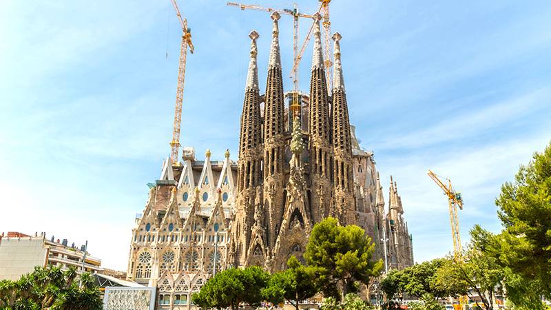 またサグラダ・ファミリアは、バルセロナのシンボルとも呼ばれる人気観光スポットの教会。街の中にそびえたつその荘厳な姿は、息をのむほどの圧倒的なスケール感です。着工から100年以上経った現在でも、完成に至っていないことはとても有名で、かつては内戦による設計図の焼失などにより工事が難航しましたが、近年ではITを駆使した建築技術の発展もあり、2026年に完成の目途が立ったと発表されました。「未完成」の姿を目にすることができるのも今のうちかもしれませんね。完成前と完成後、教会の姿を比較するために2回バルセロナを訪れるのも楽しくなりそうです。