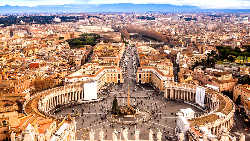 またローマを訪れたら、バチカン市国にもぜひ。ローマ北西部に位置するバチカン市国は、世界一小さな独立国家として世界遺産にも登録されています。サン・ピエトロ大聖堂から、広場を見下ろすと壮大な景色に心が惹かれますよ。