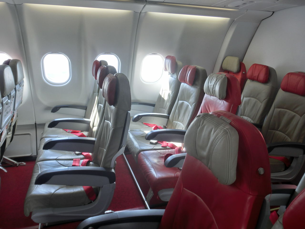 革張りのシートで、エアアジアカラーの赤が基調になってます。