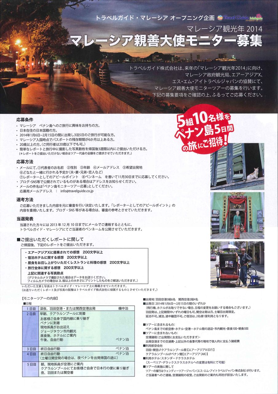 応募方法は・メールに「ペナン島モニターツアー応募」と題して