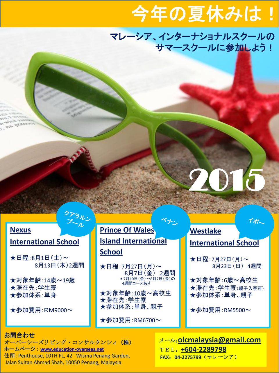 学校は、KL、ペナン、イポーでプログラム&金額は学校によって異なります。