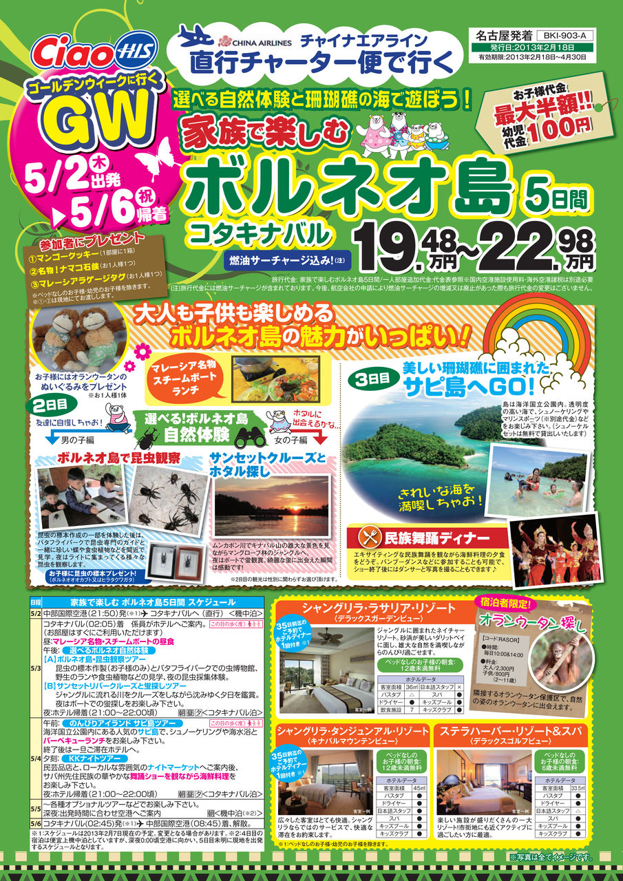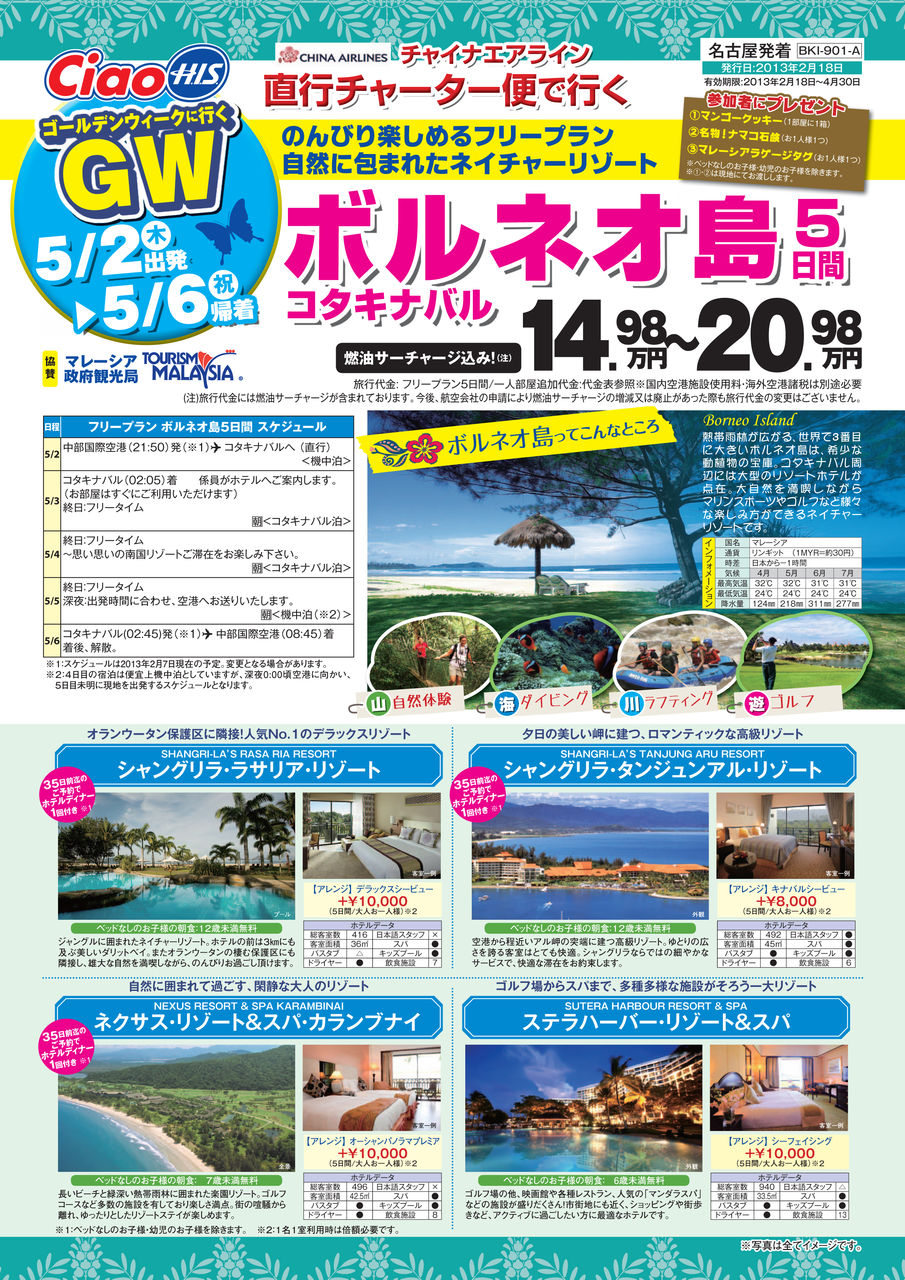 - 祝☆名古屋発→コタキナバルチャーター便が決定〜♪♪