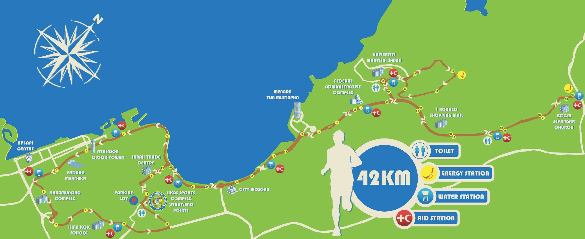 ボルネオマラソンは、コタキナバルの市内〜近郊を走るルートで