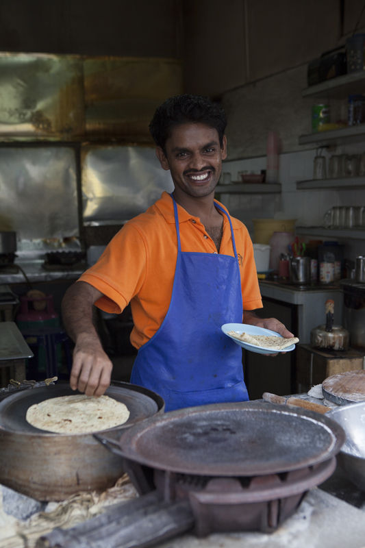 お兄さんはチャパティを焼いていました。