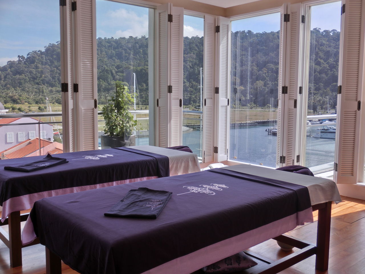 ガラス張りのマッサージルーム、解放感があってステキ