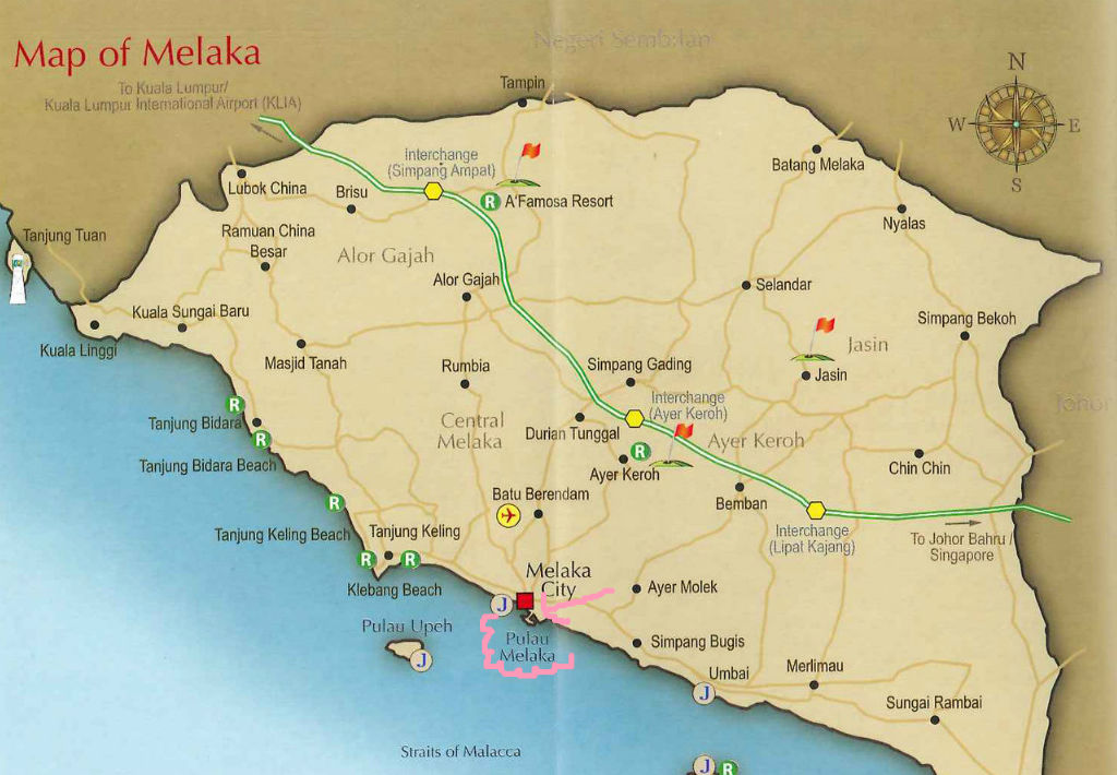 google mapで「Pulau Melaka」って検索してみてください、