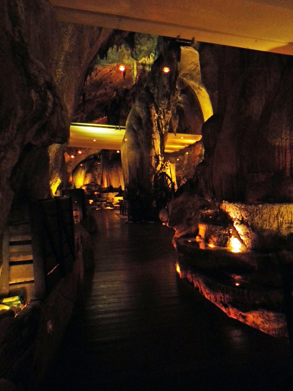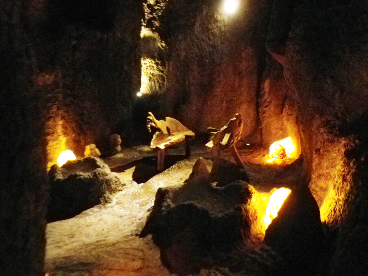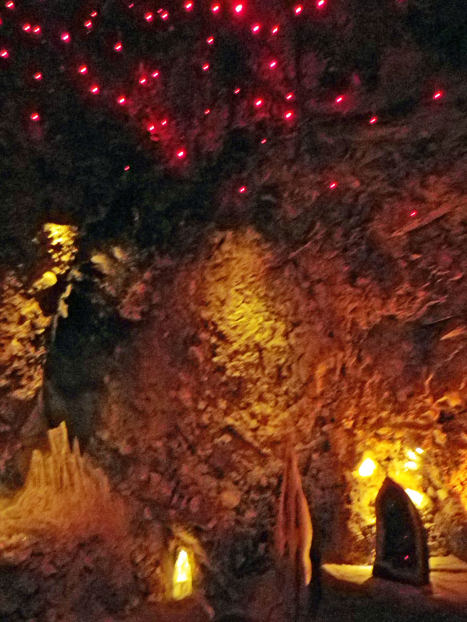 洞窟の中には、水晶とアメジストがはめ込まれたり、どんっと置かれています