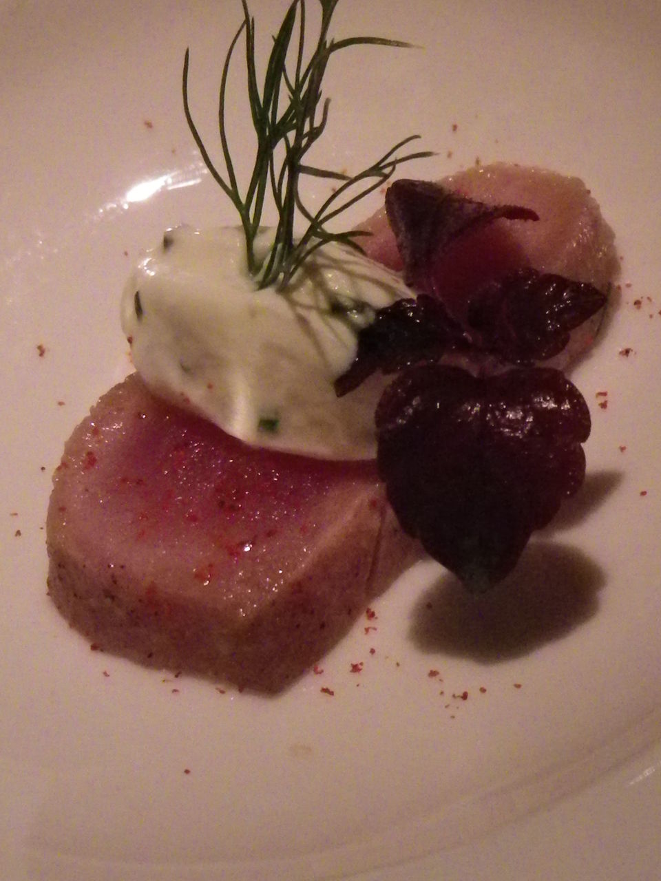 まずお通し(?)。お肉じゃなくてお魚でした。