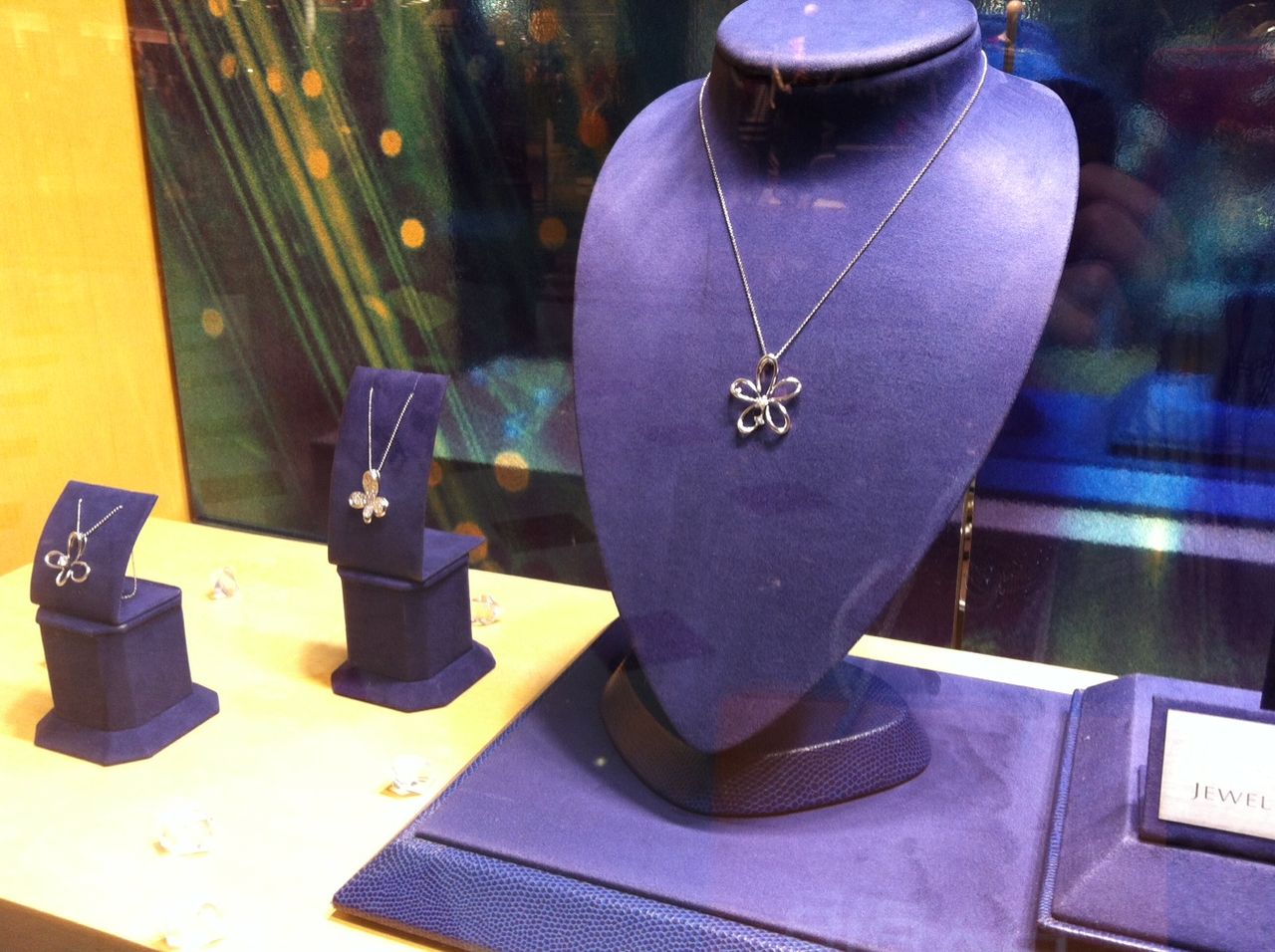 ショーウィンドーには可愛いジュエリーが並んでいます
