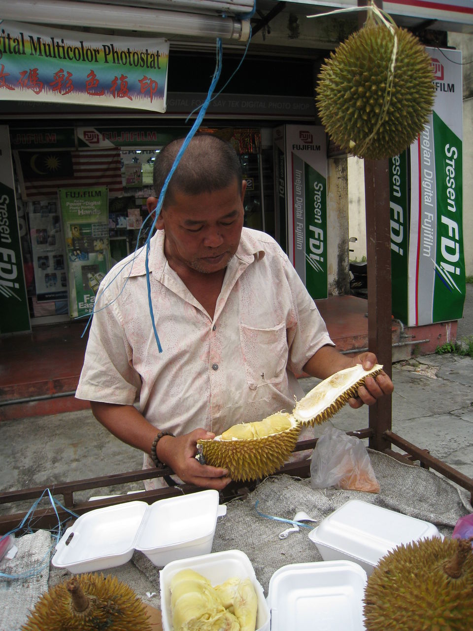 街のあちこちでドリアンが見られますよ