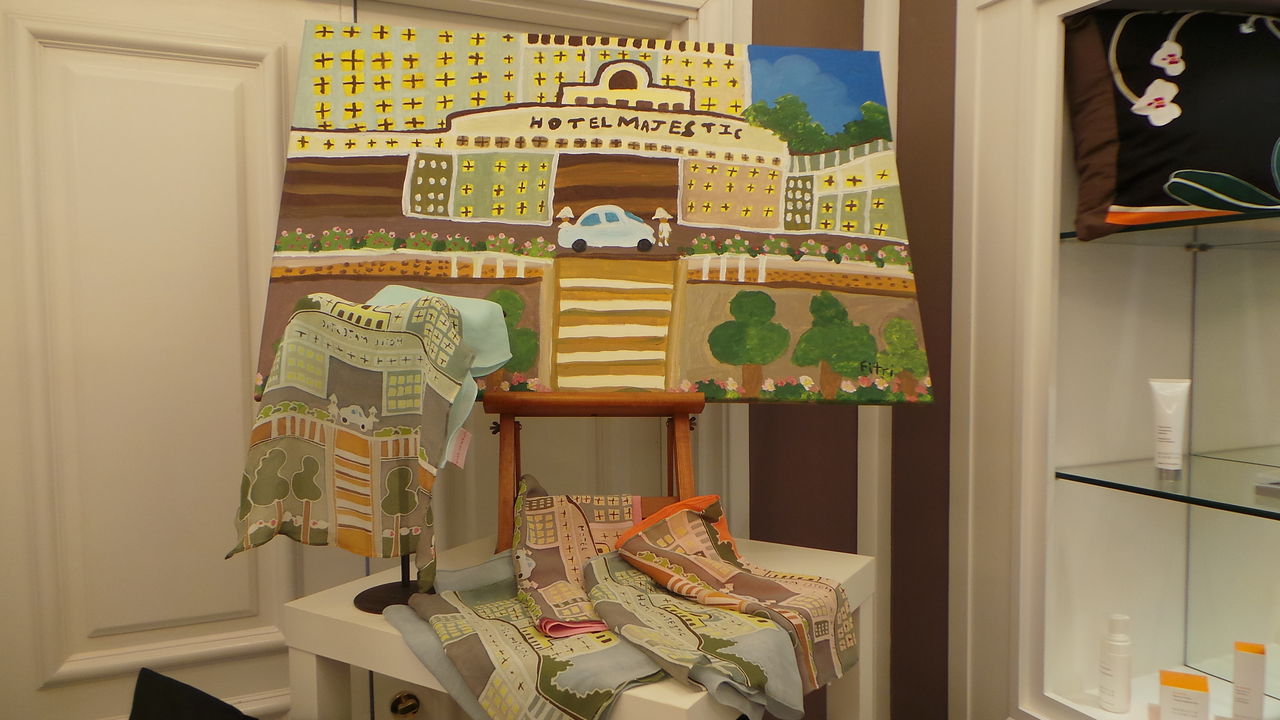 マジェスティックホテルの外観がバティックで描かれています〜。