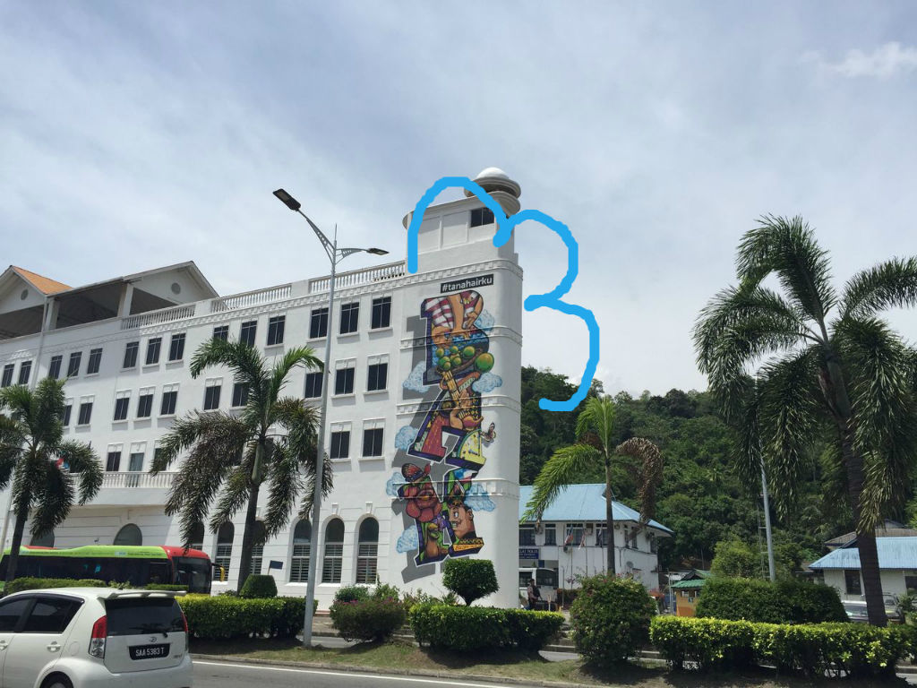 Jalan KK Bypassにある、Wisma Intiutama という建物に描かれています