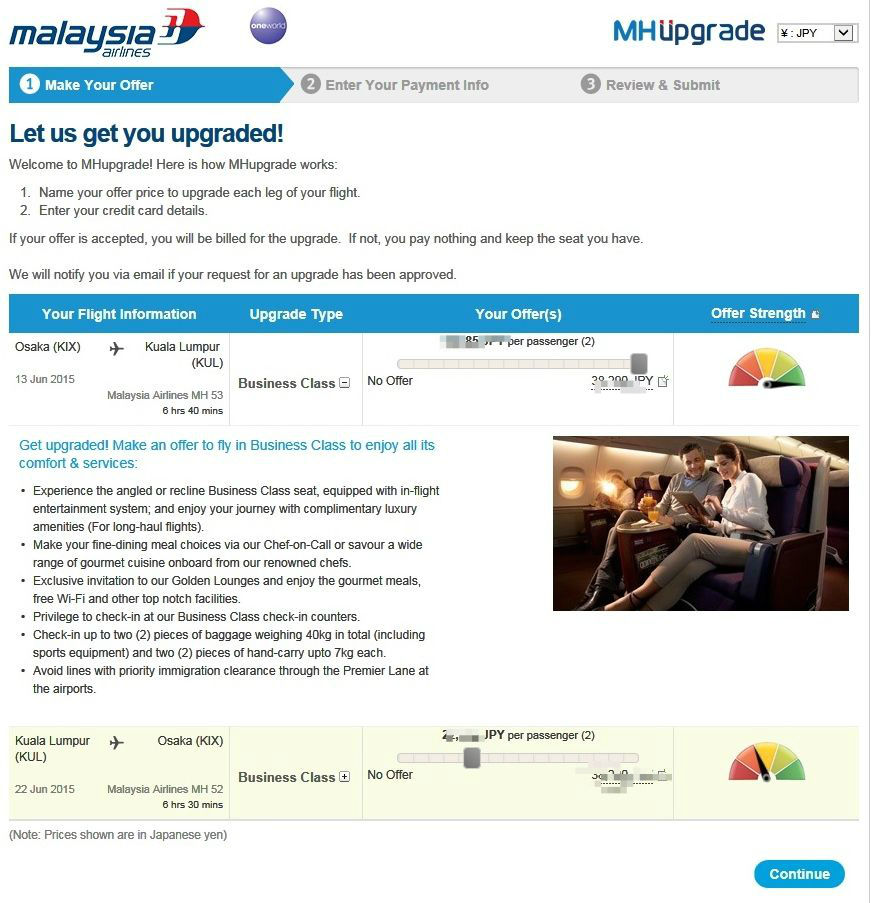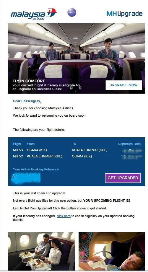 ※マレーシア航空のアップグレードサービス「MH UPGRADE」に関しては