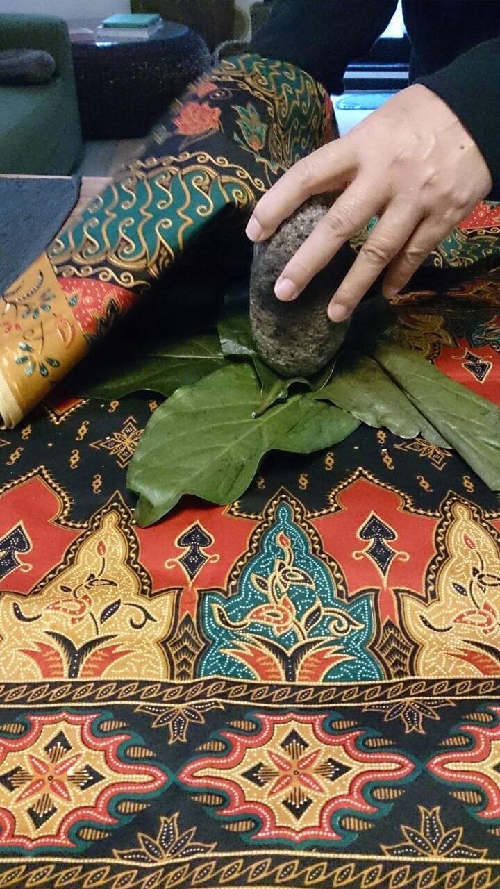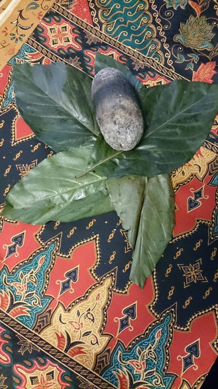 そして〜温めた石を、葉っぱの上に立て(熱いからやけどしないように