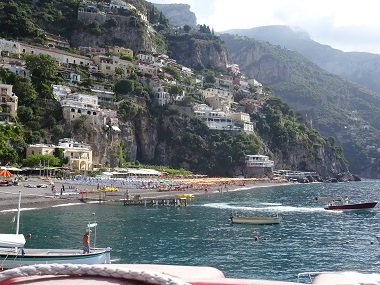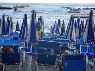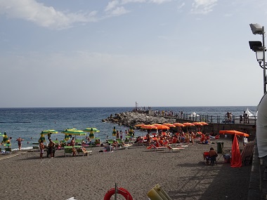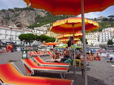 こちらは日本では有名なアマルフィ- ナポリ人半分、観光客半分という感じでした。ビーチには小さい石がころがっているので歩きにくくサンダル無しでは無理です。