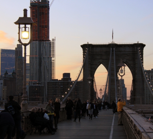 先日、ブルックリンのDUMBOから、橋のたもとのボードウォークやプロムナードを通ってブルックリン・ハイツまで、周辺エリアの見所スポットをいくつかご紹介しましたが、今度は、久しぶりにブルックリン・ブリッジ(Brooklyn Bridge)へ!しかも、夕焼けから夜景に変わる様子をお届けしますよー。