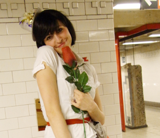 2008年頃から、ニューヨークの地下鉄の駅構内で時々見かけるキュートなパフォーマーさん。見たことあるよ!って方も多いでしょう。彼女はいつもお人形さんみたいな格好でバラの花を手に持ち、チップをあげるとパントマイムを披露して、メッセージ付きのハート型の紙をプレゼントしてくれるんですよー。