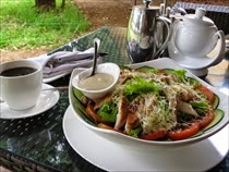 ンゴロンゴロの手前35キロにある町、カラトゥからテーマのある宿、ザ・マナーへは道路を外れてコーヒーのプランテーションの間を延々走ります。利便性からも、また雰囲気からも立ち寄るにはふさわしくない場所ですが、コンセプトも内装も際立っていてお金を使う用意がある人にはお勧めです。