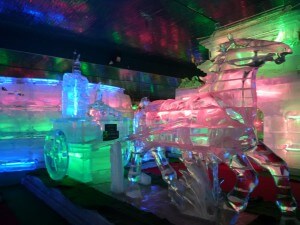 氷でアンコールワットやコロッセオなどが彫刻されていて、