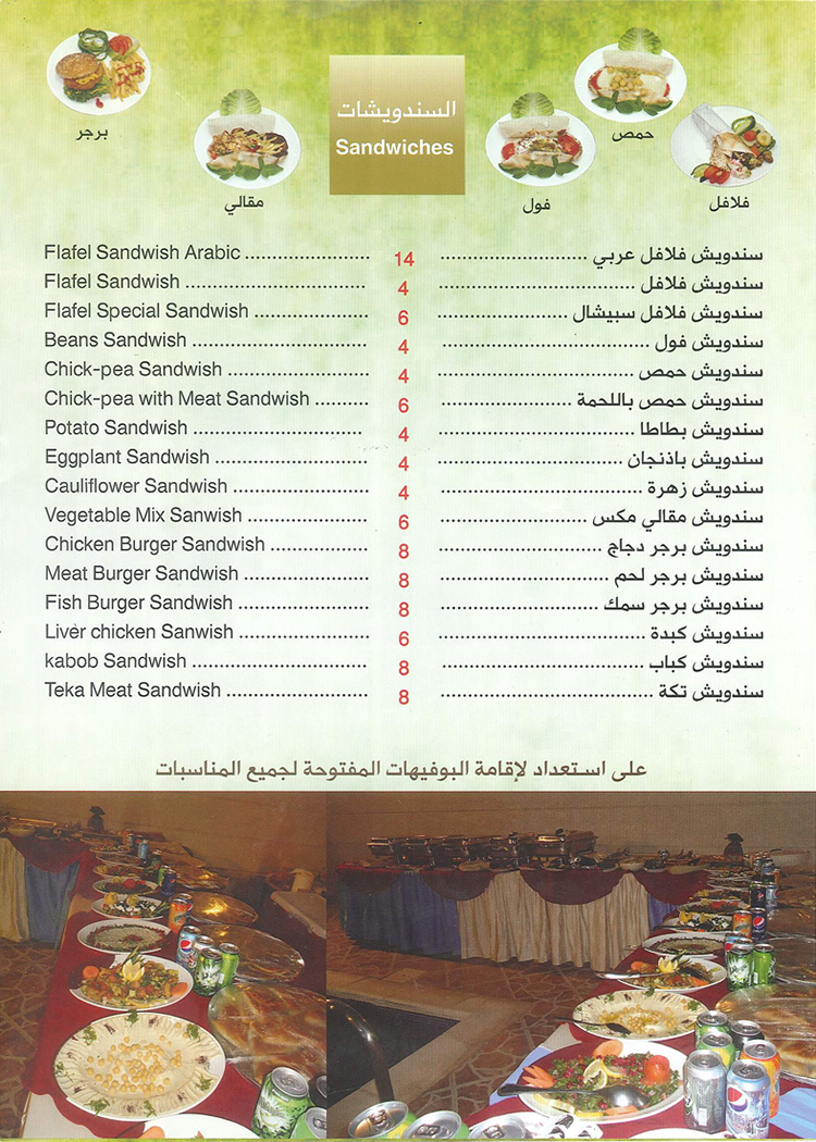 (恐らくクワイデル・アル・ナブルシ・レストラン&スイーツと読むと思われます)。