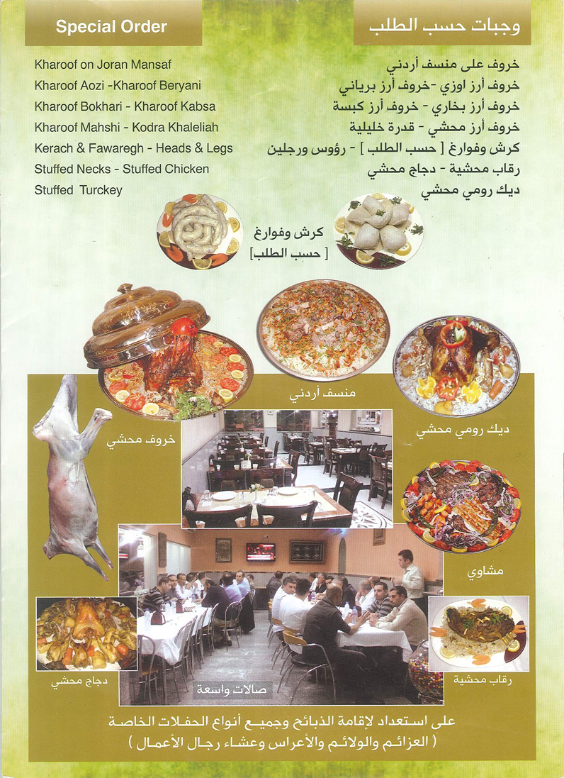 Qwaider Al Nabulsiメニュー Special Order中東の伝統的な料理が幅広く揃っていますので、ぜひいろいろと食べてみてくださいね!