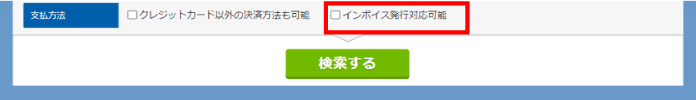 検索ページにて「インボイス発行対応可能」にチェックを入れて検索する