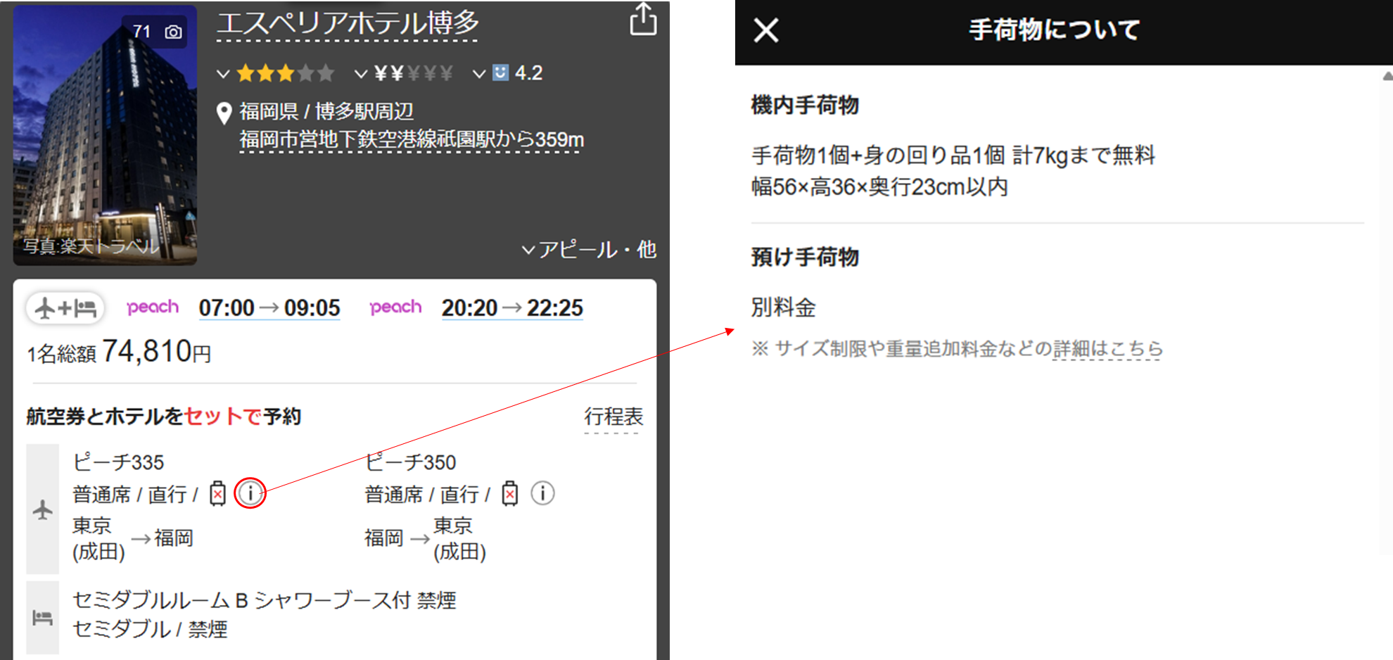 原則、受託手荷物料金が含まれていません。以下画像のアイコンを参考にしてください。