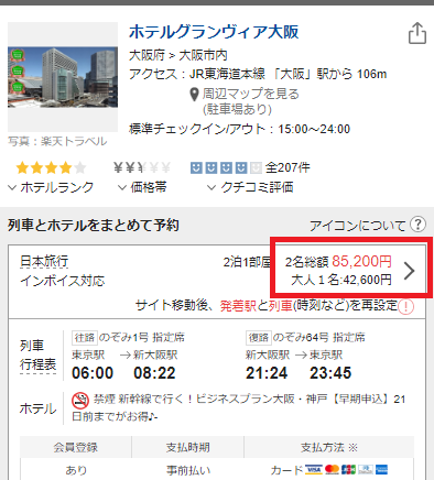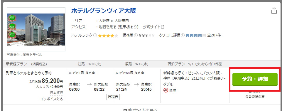 3.ご希望のプランの欄にある、赤い総額部分を押下すると予約サイトへ移動します