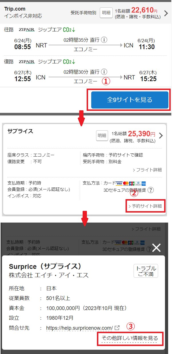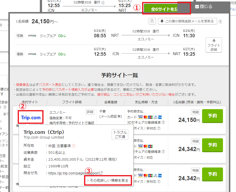 航空券について旅行会社(予約サイト)へ問合せをしたい場合は、下記の方法で問合せ先をご確認ください。