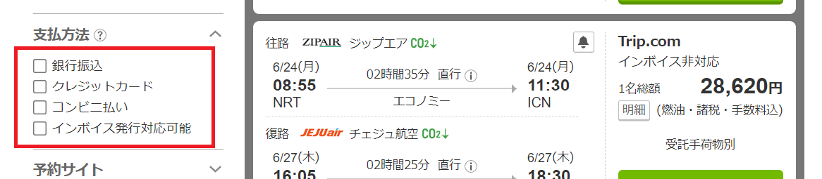 1.検索結果一覧ページ左側「支払方法」にチェックをいれ、該当の商品だけを絞り込む