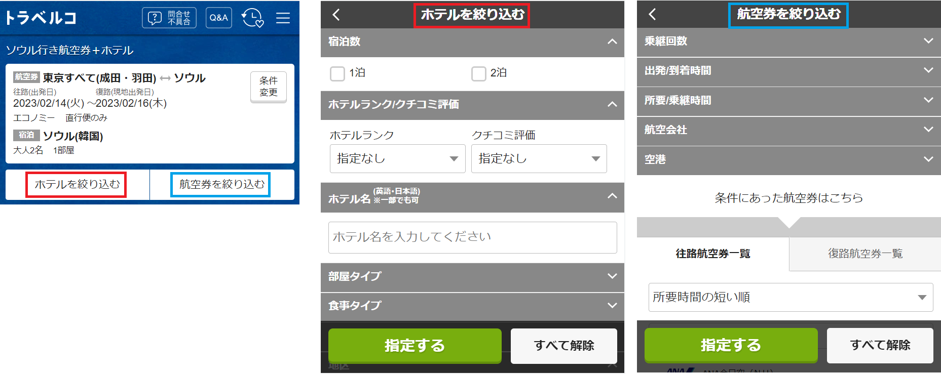 ■航空券の絞り込み条件